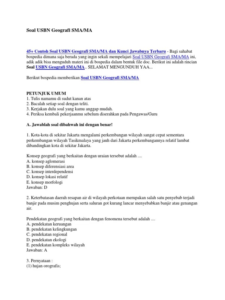 Contoh Soal Usbn Sma Geografi - Contoh Soal Essay Geografi Sma 2018 : Latihan soal geografi 2019 2020 un usbn sbmptn.